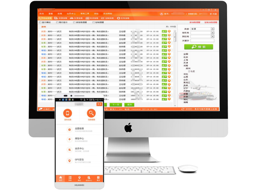 平臺主要功能有:貨物信息、車源信息、會員管理模塊、區域信息管理模塊、貨物類型管理模塊、短信管理模塊、系統日志模塊、信息定制模塊(用戶可定制信息,有符合條件的信息將推送給會員用戶)、充值系統、充值卡管理系統、分銷商管理系統,用戶功能覆蓋了PC端、移動APP(android/IOS端)、web網頁端、司機端、貨主端等目前主流的信息終端。
