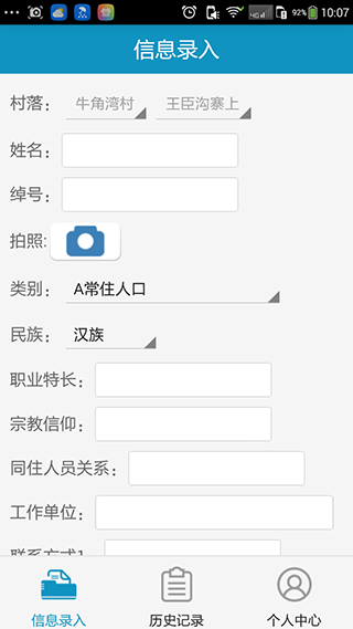 類別:根據下拉選項進行選擇,傳輸過程中只傳輸代號,減少信息量,加快上傳速度減少流量的使用。民族:APP內置我國56個民族的列表,本地緩存,增加載入速度。