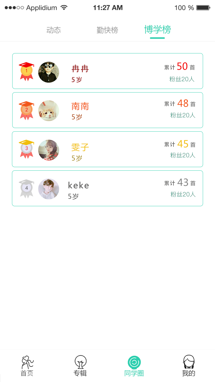 在勤快榜中增加了月份的選擇,每個月的勤快榜單都保留下來,增加榜單前幾位的成就感,激勵位于榜首的孩子們加倍學習更多古詩詞,爭取拿到更多月份的榜首位置。