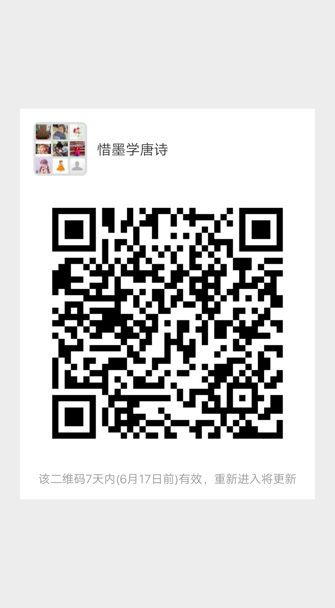 下面附上“惜墨學唐詩”微信群二維碼(因微信群二維碼有效期只有7天,若此二維碼過期,請移步至“惜墨學唐詩”APP資訊中添加微信群進入討論)