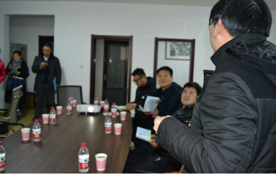 李總首先向領導們介紹公司發展歷程及公司發展情況,向各位領導匯報了核桃科技參與的典型案例情況,從2012年的大河網APP到2018年的《蝸跑》智慧共享運動項目,領導們聽得不斷點頭表示認可。