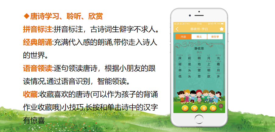 本次考察主要內容是“惜墨學唐詩APP軟件平臺”項目。對于惜墨學唐詩項目的歷史背景,研發過程,產品特點李總逐一進行了講解。領導們對“惜墨學唐詩”APP了解的越來越深入,紛紛拿起手機掃描二維碼下載這款可以讓孩子自主學習唐詩的APP。